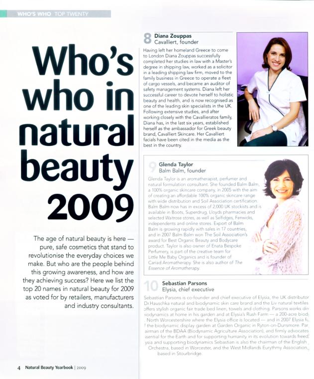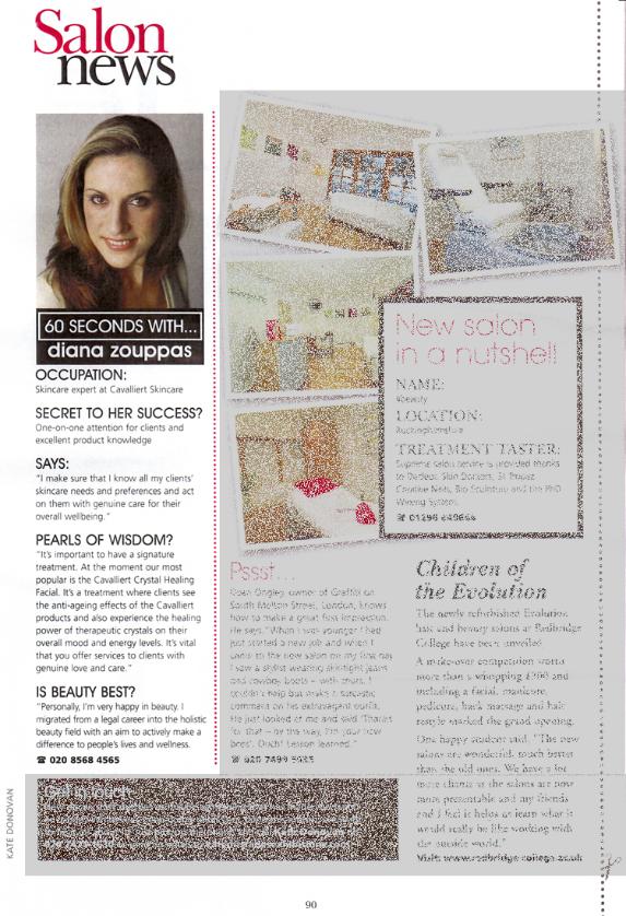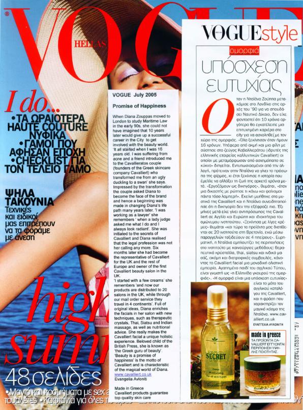 “Full of original ideas Diana enriches the facials in her salon with new techniques, such as therapeutic crystals, Thai, Shiatsu and Indian massage, as well as nutritional advice…Beloved child of the British Press, she is known as ‘the Greek guru of beauty’