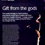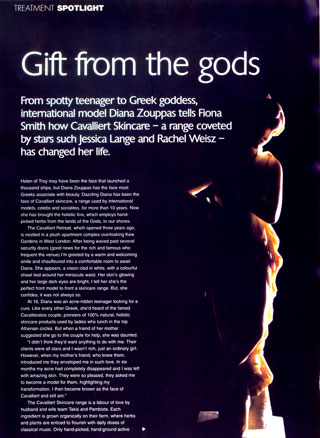 “Helen of Troy may have been the face that launched a thousand ships, but Diana Zouppas has the face most Greeks associate with beauty. Dazzling Diana has been the face of Cavalliert Skincare, a range used by international models, celebs and socialites, for more than 10 years. Now she has brought the holistic line, which employs hand-picked herbs, from the lands of the Gods to our shores”